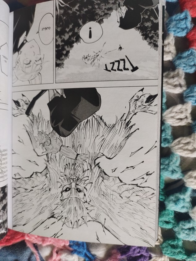Choć najbardziej w tym tomie interesowała mnie walka Itadoriego z wszechmocnym Toudou, to moją uwagę skradło starcie Pandy z Mechamaru. Było naprawdę świetne i wciągające, a przy tym zaskakujące. Do tej pory Panda wydawał się być silną, ale bardzo zabawną i nieco głupiutką postacią. Dlatego, odkrywając sekrety tego bohatera oraz jego moce miałem wielką frajdę i uświadomiłem sobie, że w Jujutsu Kaisen pozory mogą mylić, co zresztą dotyczy również wspomnianego Mechamaru.