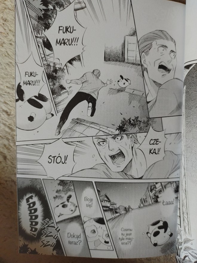 Autorka świetnie rozłożyła to zajście na czynniki pierwsze, zarówno z perspektywy pana Kandy jak i z punktu widzenia Fukumaru. Historia pełna jest emocji i naprawdę ciężko jest się w nią nie wczuć. Choć domyślamy się, że wszystko skończy się dobrze, to utożsamiamy się z bólem naszego bohatera. Co więcej, widzimy jak w takich okolicznościach może poczuć się kot, jak może rozumować.