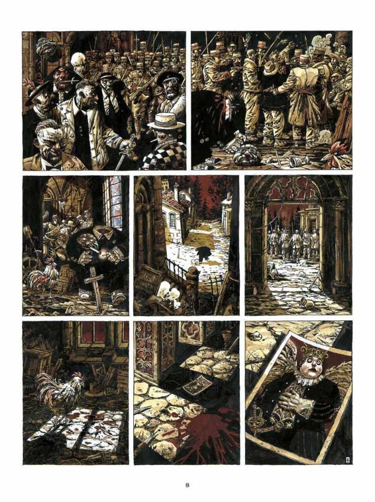 Już same postaci wydają się być wynaturzone, jakby pozbawione pewnego ludzkiego elementu! W parze z wyglądem idzie ich zachowanie. Miasteczko Eccenihilo, do którego trafiamy naznaczone jest bowiem jakimś rodzajem agresji i brutalności. Aż strach byłoby chodzić po tych ulicach, a co dopiero z kimkolwiek rozmawiać. Nicolas de Crecy buduje niezwykłe miejsce w bardzo specyficznym klimacie. Niby się go boimy, ale z drugiej strony przyciąga nas i nie możemy się od niego oderwać.