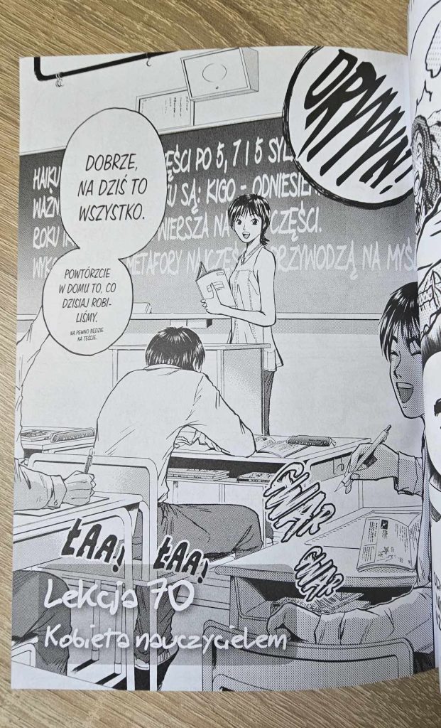 Przyznam szczerze, że ten tom bardzo pozytywnie mnie zaskoczył. Generalnie, manga wciąż trzyma wysoki poziom i cały czas bawi. Tym razem jednak Onizuka wydaje się być bardziej bohaterem drugoplanowym historii, a okazję by zabłysnąć mają inne postaci. Autor przypomina nam, że jest tutaj całe mnóstwo ciekawych bohaterów i nie samym Onizuką komiks stoi. Bardzo mi się to spodobało, choć z drugiej strony miałem troszkę niedosyt, że tytułowego nauczyciela nie było więcej.