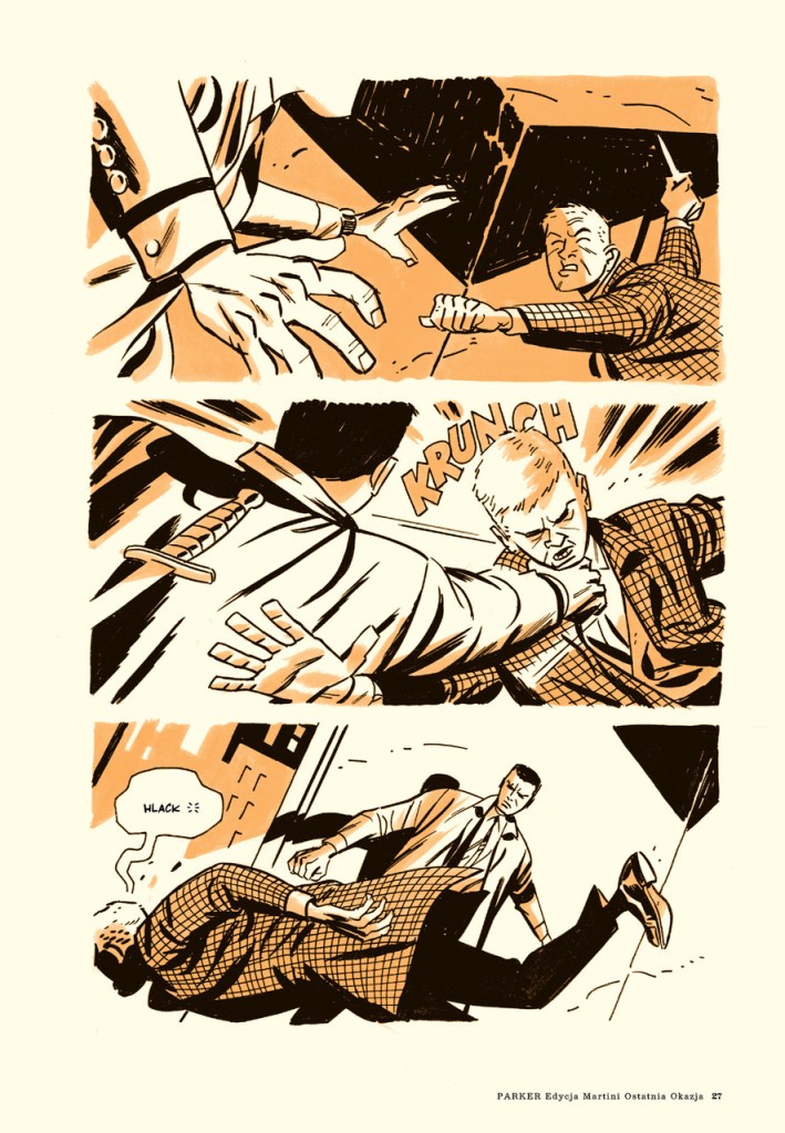 W drugim tomie komiksu w przepięknej edycji martini, mamy okazję zobaczyć jak działa w większym zespole i gdy w grę wchodzą naprawdę grube pieniądze. Przekonujemy się również jak Parker potrafi wyjść z największych opałów. Ciekawym dodatkiem jest zupełnie oryginalna historia, skupiająca się na jednym z popleczników tytułowego bohatera, która nie została zaczerpnięta z twórczości Richarda Starka.