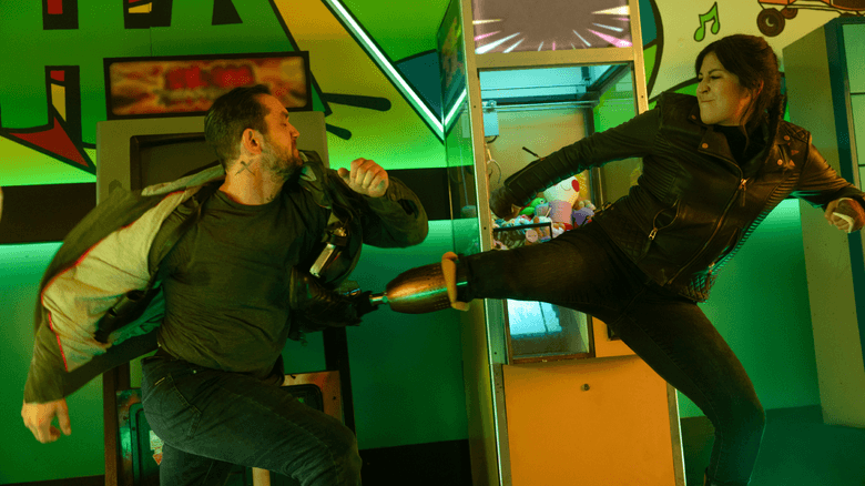 Najnowszy tytuł osadzony w MCU obfituje w świetne sceny akcji, które robią tym większe wrażenie, gdy przypominamy sobie, że Maya jest nie tylko głuchoniema, ale także amputowano jej w dzieciństwie część nogi. Mimo tego widzimy bohaterkę, wyczyniającą niesamowite rzeczy na ekranie. Jest to uzasadnione niezwykłym wysiłkiem i przebytymi w młodości treningami, dzięki którym stała się zabójczą bronią.