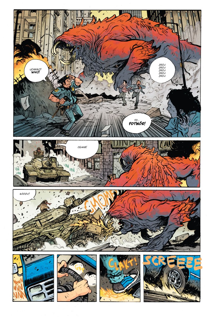 Szalenie spodobały mi się także walki z ogromnymi potworami rodem z komiksów o Godzilli oraz fantastyczny hołd dla metalowych muzyków złożony przez autora. Nie spodziewałem się, że w finałowej części komiksu ujrzę kilka znanych mi ze świata muzyki osobowości. Czytając komiks zyskuje się ogromne pokłady energii, aż chce się skakać, wrzeszczeć, niczym przy metalowej muzyce. Czuć ten klimat na całego. Myślę jednak, że nawet osoby, które z tym gatunkiem nie mają do czynienia docenią historię i jej pozytywne przesłanie.