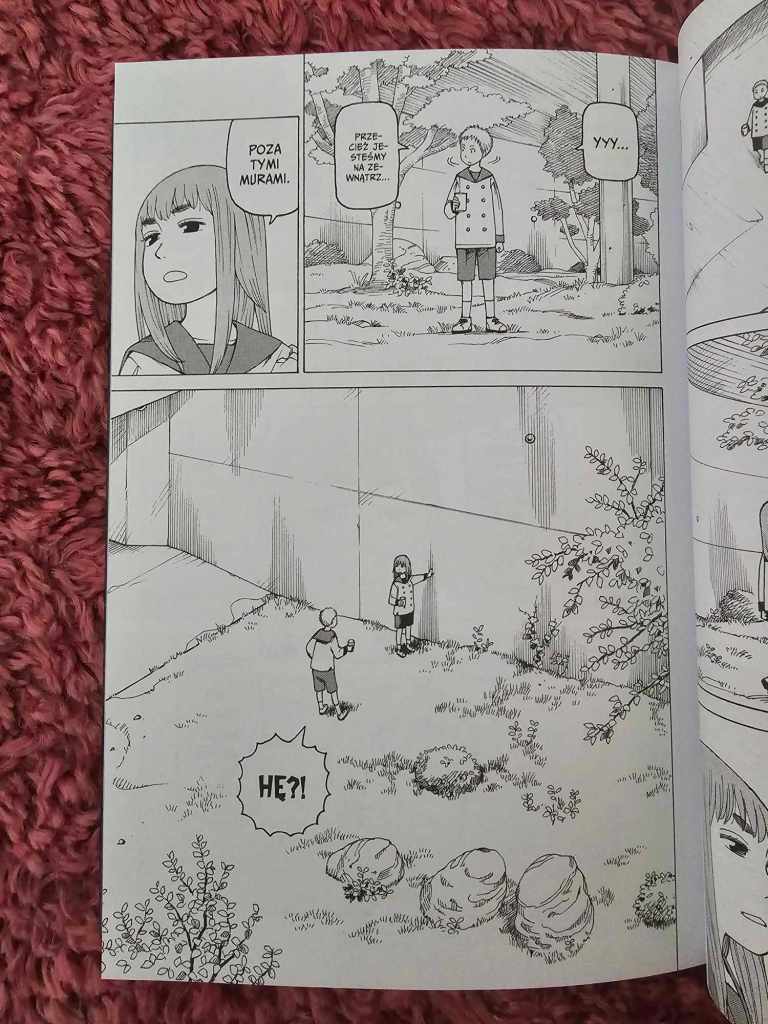 Złudne niebo, to wciągająca historia w bardzo tajemniczym klimacie. Może przywieść wam na myśl chociażby The Promised Neverland, choć według mnie atmosfera jest tutaj jednak cięższa. Bardzo fajnie wyglądają miejsca, które przemierzają Kiruko i Maru. Sama manga nie zdradza nam póki co zbyt wiele na temat tego co doprowadziło kraj, a może i nawet świat do takiego stanu, co nadaje całości wspomnianego klimatu. Jest też pewien element sci-fi związany z ludojadami, dziwną bronią, którą posługuje się Kiruko oraz zagadkową mocą Maru, który może te potwory ostatecznie zgładzić.