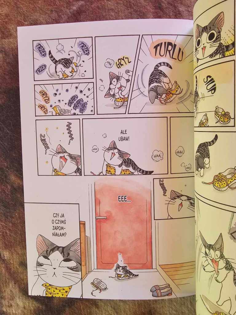 W parze z oryginalną i pełną humoru treścią idą tutaj ilustracje. Wszystkie reakcje Chi są wprost fantastyczne. Najbardziej urzekło mnie jej rozkojarzenie, które od razu skojarzyłem z moimi własnymi kotami. No i ta przemiana od początkowo wystraszonej i nieco wrogiej, aż do pełnego przystosowania się do nowego miejsca zamieszkania jest z życia wzięta.