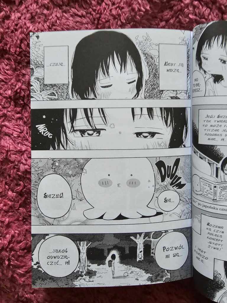 Jak zatem widzicie, Pierwszy grzech Takopiiego łączy ze sobą dwa naprawdę różne elementy. Z jednej strony mamy tego słodkiego kosmitę, element science-fiction. Z drugiej, robi się bardzo poważnie, gdy poznajemy rodzinne dramaty bohaterów. Udaje się jednak te wątki doskonale ze sobą połączyć. Sama historia wciąga, bo sami chcielibyśmy, żeby tym dzieciakom w życiu się powiodło, by zagościł w nich ten uśmiech jaki Takopii miałby do niego wnieść. I jesteśmy ciekawi jak ta właściwie miałoby do tego dojść, bo pomysły bohaterów (czyli kosmity i dziesięciolatków) są dość absurdalne i wnoszą pewną dawkę humoru do mangi.