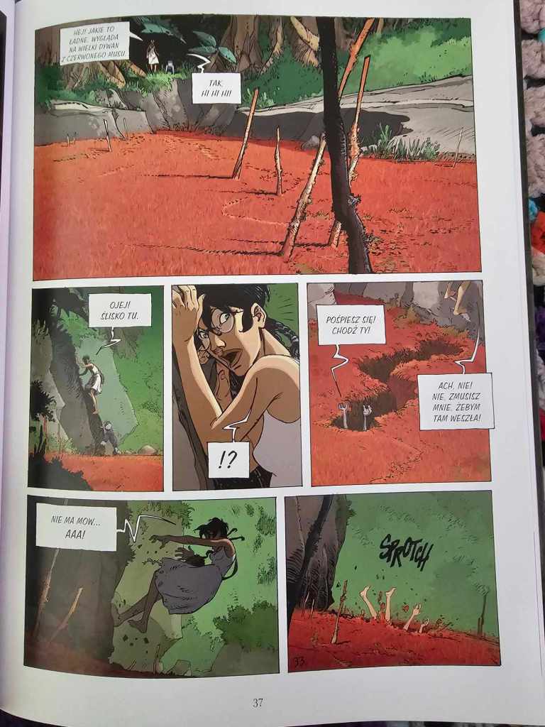 Jednocześnie, bardzo fajnie i wiarygodnie rozwija się relacja między Erwanem, a Pauline. On sprawia wrażenie nieco nachalnego, ale po prostu przemawia za nim jego ciekawość. Ona z kolei zdaje się narzekać na wszystko i na wszystkich. Z czasem jednak dostrzega dobre strony Erwana, a ten nawet wpada jej w oko. Ta ich naturalna więź zachęca nas do dalszej lektury komiksu.