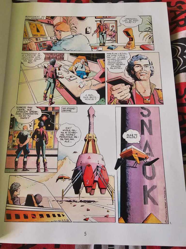 Pierwszy album przedstawia nam głównego bohatera oraz miejsce akcji jakim jest rok 2082. Zaczynamy w Stanach Zjednoczonych, ale nieraz przenosimy się też do przestrzeni kosmicznej. Całe tło komiksu jest bardzo szczegółowe, rozbudowane i barwne. Ilustracje robią ogromne wrażenie i niczym nie odstępują rysunkom zachodnich artystów, a podkreślmy, że początki komiksu sięgają lat 80. i stanu wojennego.