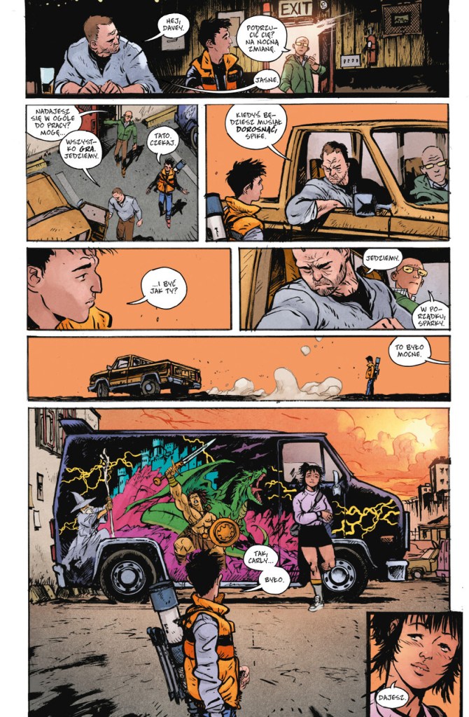 Byłem szalenie ciekaw co Johnson ze swoim dynamicznym i ekspresyjnym stylem wniesie do świata Transformers. Pierwszy tom jego komiksu to nowy początek dla łączonego uniwersum Transformers i G. I. Joe, które będzie od teraz znane pod nazwą Energon Universe. Na jego kartach poznajemy Spike’a, który intensywnie myśli o swojej przyszłości. Musi jednak mieć na względzie swoją rodzinę, nie potrafiącego pogodzić się z tragedią ojca, który topi smutki w alkoholu. Przypadek sprawia, że drogi chłopaka krzyżują się ze ścieżką kosmicznych przybyszy znanych jako Autoboty.