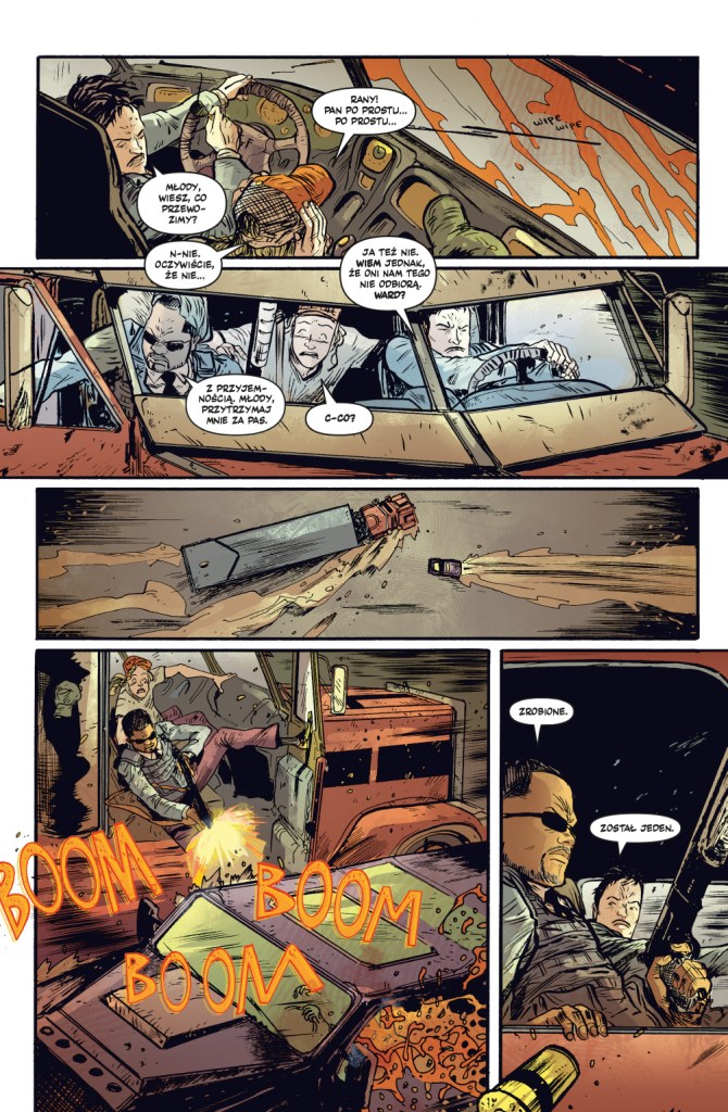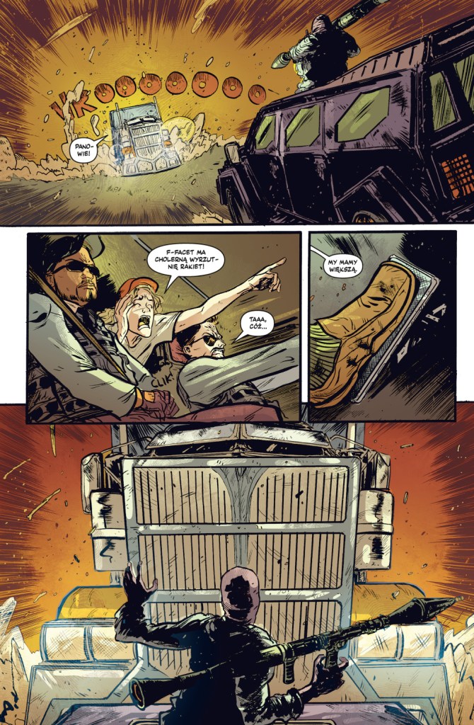To jest prawdziwa jazda bez trzymanki. Krew się leje na wszystkie strony, bohaterowie się zdradzają, mamy duchy, bazooki i niekończącą się wiązankę wybuchów. Gdzieś w tą szaloną historię o nadprzyrodzonym ładunku udało się nawet zmieścić sympatycznego psa, towarzyszącego głównemu bohaterowi, a przytykom i sarkazmowi nie ma tutaj końca. Przez niemal każdą stronę komiksu po prostu dobrze się bawimy, a przy okazji sama historia nie jest bezmyślna.