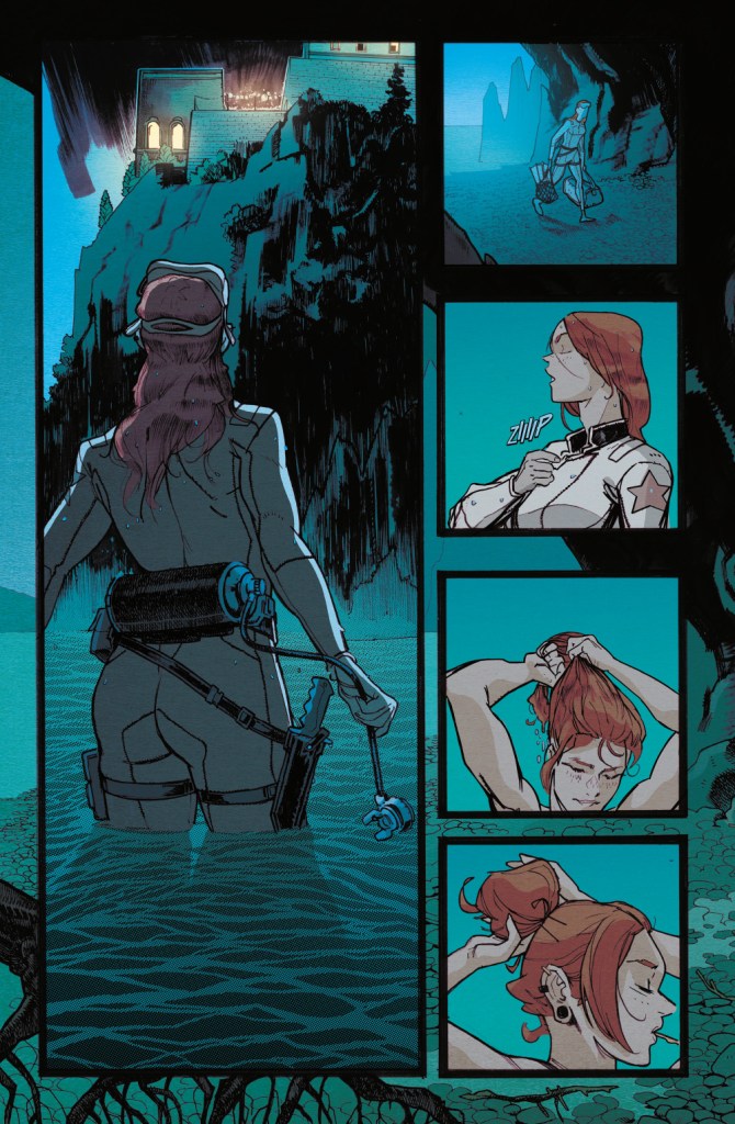 Zacznijmy od tego, że komiks świetnie wprowadza bohaterkę, z miejsca wskazując na jej walory. Są nimi nie tylko seksowna i wyćwiczona sylwetka, ale także spryt, inteligencja i znajomość sztuk walki (oczywiście). Bardzo szybko przechodzimy do szpiegowskich akcji, które te cechy Scarlett podkreślają. Zarazem rozpoczynają one główny wątek, który związany jest z zaginioną agentką i przyjaciółką głównej bohaterki, Jinx, którą ta przypadkowo spotyka podczas wykonywania swojej misji. Wówczas nie wie jeszcze, że zaprowadzi ją to do klanu Arashikage i poszukiwań potężnej broni.