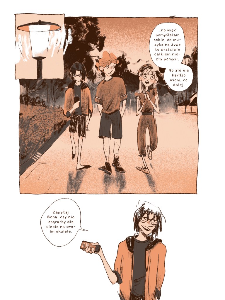 Choć rysunki są bardzo charakterystyczne i nie każdemu muszą przypaść do gustu, to doskonale pasują do scenariusza Outline. Historia według mnie dotrze do każdego czytelnika, bez względu na wiek. Starsi przypomną sobie czasy młodości, z kolei młodych komiks skłoni do refleksji na temat ich nadchodzącej przyszłości. Ta opowieść to zdecydowanie wartość dodana dla każdej osoby, która będzie miała okazję ją poznać.