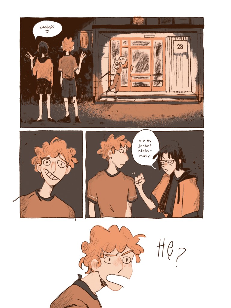 Co więcej, świetna jest ekspozycja głównych bohaterów komiksu. Poznajemy ich w bardzo naturalny sposób i właściwie z miejsca łapiemy z nimi dobry kontakt. Następnie w uporządkowany sposób dowiadujemy się z jakimi wyzwaniami się mierzą. Życie niektórych z nich nie jest usłane różami, a inni sprawiają wrażenie nieszczęśliwych. Ich droga, od momentu, w którym ich spotykamy, aż do zakończenia roku szkolnego, jest pełna wzlotów i upadków, ale to wszystko jesteśmy w stanie śmiało sobie wyobrazić.