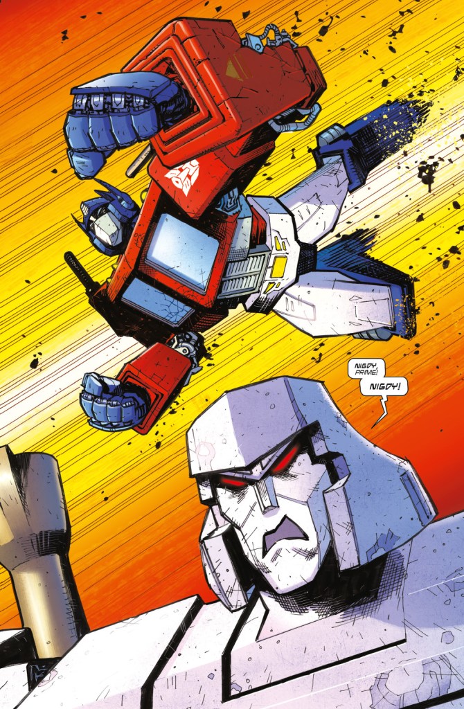 Wisienką na torcie nowego tomu jest powrót Megatrona. Choć lider Deceptikonów nie przechodzi jeszcze do pełnej ofensywy, to mamy okazję w końcu zobaczyć go w akcji. Co więcej, jego historia wiąże się z obecnością cywilizacji Cobra-la, a to z kolei wpisuje się w szerszy kontekst całego Energon Universe, łączącego światy Transformers i G. I. Joe. Finał, w którym Megatron powraca, zapowiada, że to dopiero początek wojny, choć mogłoby nam się wydawać, że na więcej chaosu i zniszczeń nie ma już w tej serii miejsca.