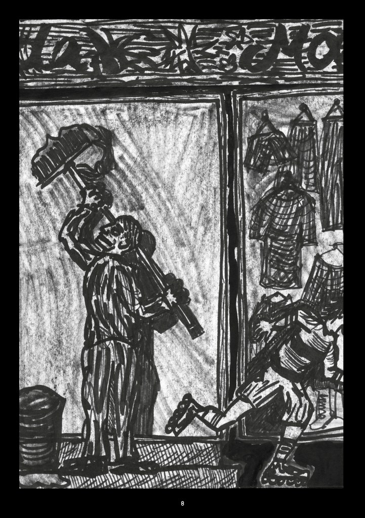 Tym co niewątpliwie wyróżnia prace Pryta zawarte w albumie jest niezwykłe połączenie poezji i komiksu. Bądźmy szczerzy. Dla autora nie liczą się piękne, kolorowe, dopracowane co do najdrobniejszych detali ilustracje. Takowych tutaj nie uświadczycie. Co więcej, możecie wręcz poczuć się odstraszeni jego stylem, a nawet pomyśleć, że jest rysunkowym beztalenciem. Radzę jednak wstrzymać konie i dobrze wczytać się w album, a być może całość nabierze dla was jakiegoś znaczenia.