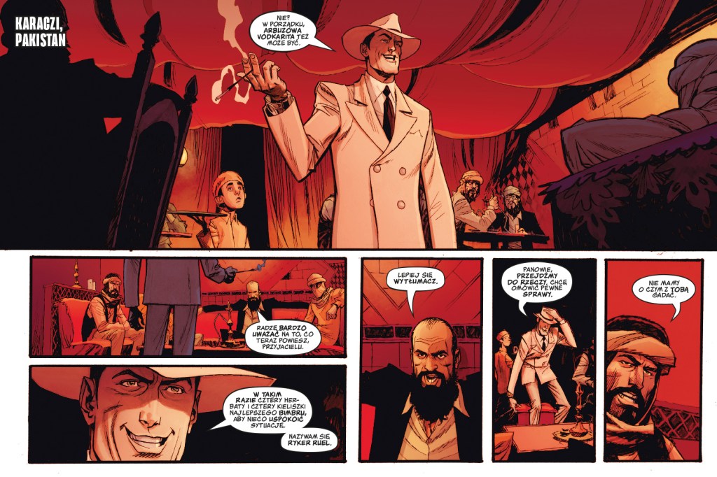 Bardzo fajnie wypada także scenariusz komiksu. Początkowo może nam się wydawać, że kierunek w jakim zmierza historia da się łatwo rozszyfrować. Z czasem przekonujemy się, że nie jest to jednak opowieść, w której bohaterowie i ich czyny są tylko czarne lub białe. Ryker ma w sobie mnóstwo charyzmy, ale depczący mu po piętach Colin również jest barwną postacią, choć o zupełnie innym charakterze. Dobrze się balansują, a to pozytywnie odbija się na fabule.