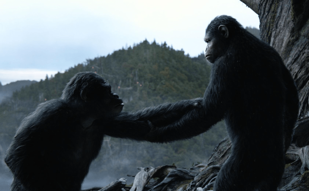 Ewolucja planety małp, zgodnie z tytułem, pokazuje nam jak przez dekadę zmieniła się rzeczywistość człekokształtnych. Obserwujemy jak z rolą lidera, ale także ojca i głowy rodziny mierzy się dojrzały Cezar. Przez cały film musi wybierać między utrzymaniem swojej pozycji w oczach społeczności i kierowaniem się rozumem, a wiarą w pokojowe współistnienie ludzi i małp oraz tym, co podpowiada mu serce. W bardzo ciekawy i oryginalny sposób przedstawił nam to Matt Reeves.