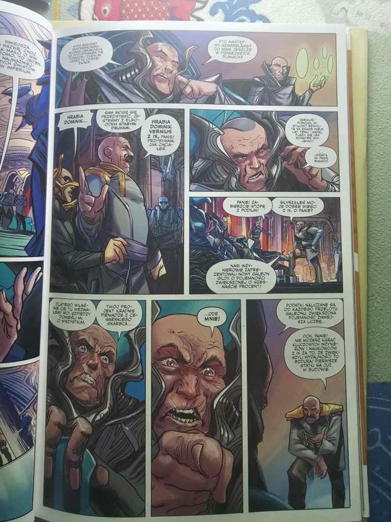 W komiksie spodobał mi się zwłaszcza wątek intrygi politycznej, który odsłania się przed czytelnikiem. Na każdej z planet dostrzegamy jego kolejne warstwy i z czasem dostrzegamy jego coraz większą skalę. Ton historii jest poważny, nie ma tu miejsca na zbyt wiele humoru. Mamy poczucie, że jesteśmy świadkami bardzo ważnych wydarzeń, nawet jeśli są to tak wydawałoby się zwyczajne sytuacje jak trening, polowanie, czy stosunek seksualny.