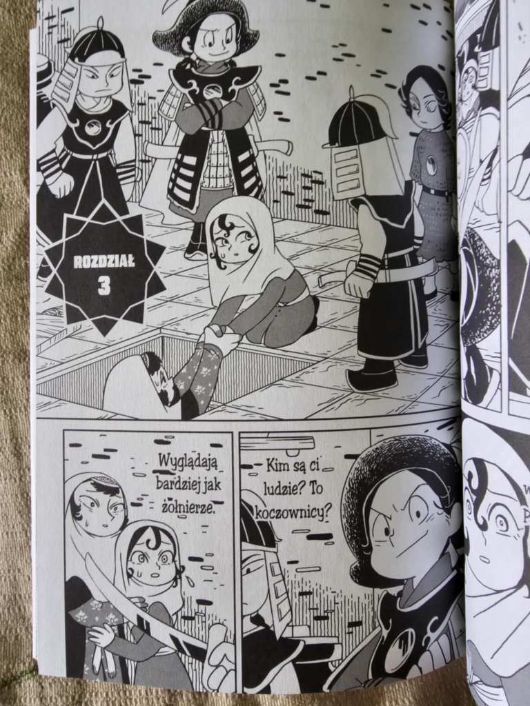 Dosyć ciekawie prezentują się tutaj ilustracje. Postaci zostały przedstawione w prosty sposób, nie przywiązują ogromnej uwagi do drobnych detali w ich wyglądzie. Jednakże, same realia XIII-wiecznego świata pełne są szczegółów, zwłaszcza jeśli chodzi o stroje, tkaniny, architekturę i rośliny. Dużo uwagi poświęcono nawet tak drobnym elementom jak biżuteria, naczynia, namioty, czy jedzenie. Bez dwóch zdań, łatwo jest nam poczuć się jak w przeszłości. Styl ilustracji może wydać się trochę infantylny, ale naprawdę dobrze tutaj pasuje i im dłużej będziecie czytać, tym bardziej pozytywnie będziecie zaskoczeni.