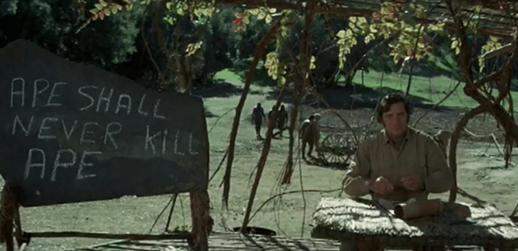 Wszystkiego mamy tutaj mniej. Mniej małp, ludzi, akcji i niespodzianek. Nawet rola Cezara wydaje się być skromniejsza, aczkolwiek nadal istotna. Bitwa o planetę małp jest jedyną częścią serii, która kończy się pozytywnym akcentem, co jest sporym zaskoczeniem. Twórcy sugerują nam, że pomimo wydarzeń z poprzednich odsłon, doprowadzenie do pokoju między ludźmi i małpami jest jednak możliwe, a nowa ścieżka czasu jest w stanie zaistnieć, a scenariusz z oryginału nie musi się ziścić. Zabrakło mi tu jednak głębi dotychczasowych produkcji, przez co to przesłanie wybrzmiewa słabiej niż powinno.