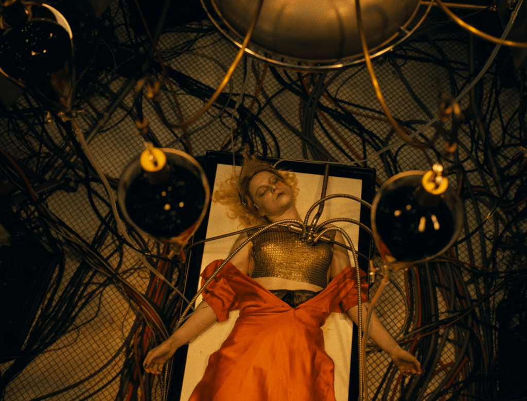 Wśród plusów filmu muszę jeszcze wymienić kreacje aktorskie, w szczególności Jessie Buckley jako Panny Młodej oraz Christiana Bale’a w roli Frankensteina. Para jest na wielkim ekranie wręcz elektryzująca, a śledzenie rozwoju ich relacji jest wręcz hipnotyzujące. Tu również możemy powiedzieć o pewnej mieszance – kobiecego szaleństwa, furii i wyzwolenia oraz męskiej siły, spokoju i poświęcenia. To nie jest zwyczajna miłość, ale wciąż jest to miłość i jej dziwność dwójka swoimi rolami doskonale oddała. W pamięć zapadł mi też Jake Gyllenhaal, który gra małą, ale istotną rolę gwiazdy ówczesnego kina i można by pomyśleć, że zabrali go z tamtych czasów wehikułem i umieścili w tej produkcji.