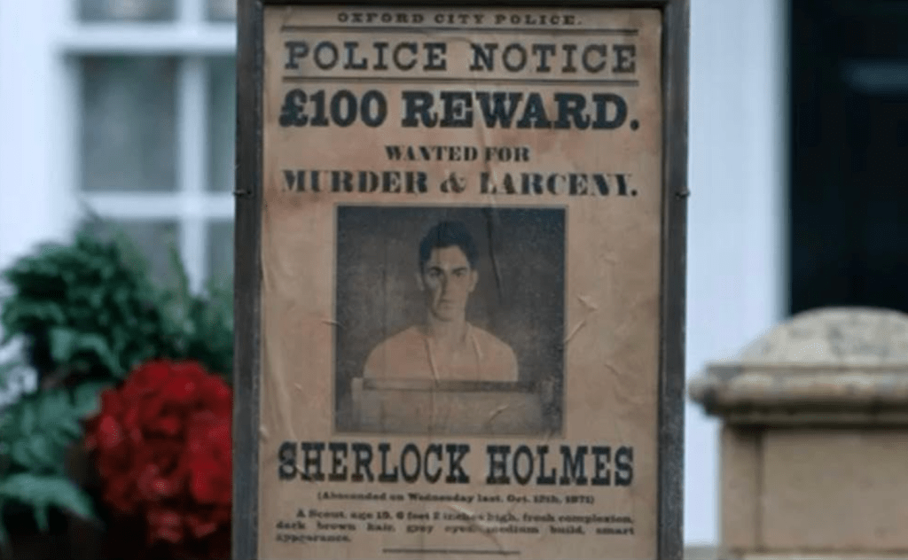1. sezon przenosi nas do 1871 roku. W dość nietypowych okolicznościach poznajemy 19-letniego Sherlocka Holmes, odsiadującego wyrok, głównie za obrazę sądu, ale także za trening kradzieży kieszonkowej. Młody, zbuntowany, pewny siebie nastolatek zdaje się cały czas poszukiwać sposobów na zabicie nudy. Za namową brata, Mycrofta wyrusza do Oksfordu, gdzie od razu wpada w tarapaty, co zresztą jest dla niego charakterystyczne im dłużej oglądamy serial. Zostaje oskarżony o morderstwo, a jak wkrótce się przekonujemy sprawa ma globalne rozmiary. Czy bohaterowi uda się rozwikłać wielką zagadkę i oczyścić się z zarzutów? Właśnie o tym przekonujemy się na przestrzeni ośmiu epizodów.