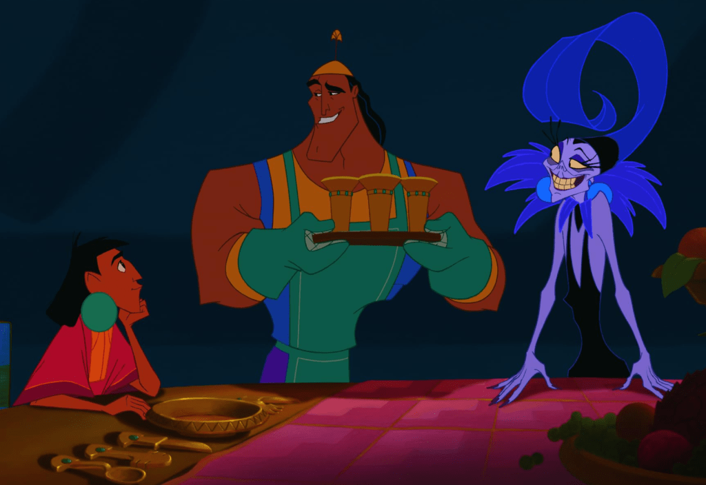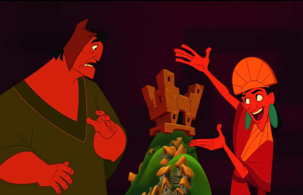Jest kilka punktów, według których Nowe szaty króla nie umywają się do innych klasyków Disneya. Pod kątek stylu animacji, nie mamy tutaj nic nadzwyczajnego, ani oryginalnego. Mamy barwną, ale co najwyżej przyzwoitą kreskę. Trochę tak jakby twórcy filmu nie mieli ciekawego pomysłu na przedstawienie tego świata w charakterystyczny sposób. No i nie wykorzystano według mnie również pełni potencjału jaką daje kultura starożytnych Inków, w odróżnieniu choćby od Mulan, czy Pocahontas. Jak już jednak podkreślałem, film stawia bardziej na rozrywkę i stąd takie, a nie inne wybory jego twórców.