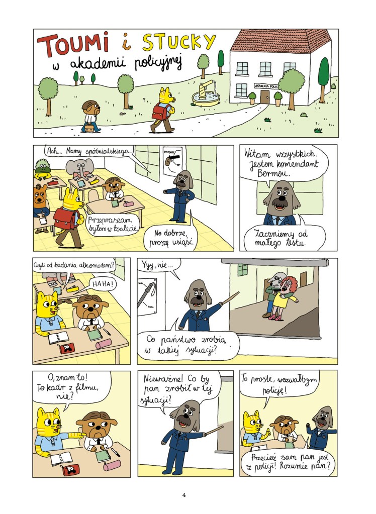 Słodkie, sprawiające niewinne wrażenie zwierzątka jako psychopaci i szaleńcy. Właśnie ten kontrast przede wszystkim sprawia, że Komisarz Toumi to przezabawna i wciągająca lektura. Slapstick, parodia kryminalnych historii, a na dodatek bardzo fajne, polskie tłumaczenie, które sprawia, że historia staje się bardziej swojska. Miałem tak wielką frajdę z czytania komiksu, że w ogóle nie przeszkadzał mi schemat tych śledztw i śmiałem się przy każdym z nich.